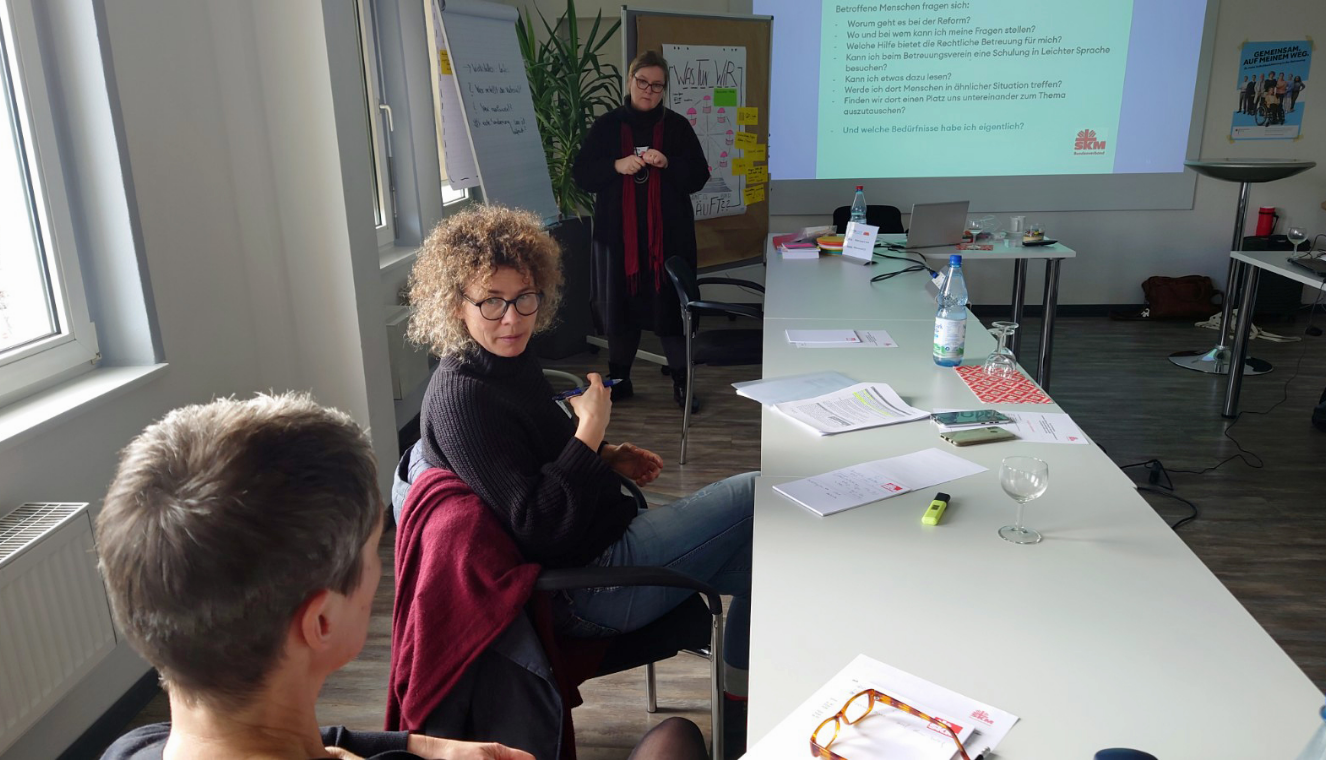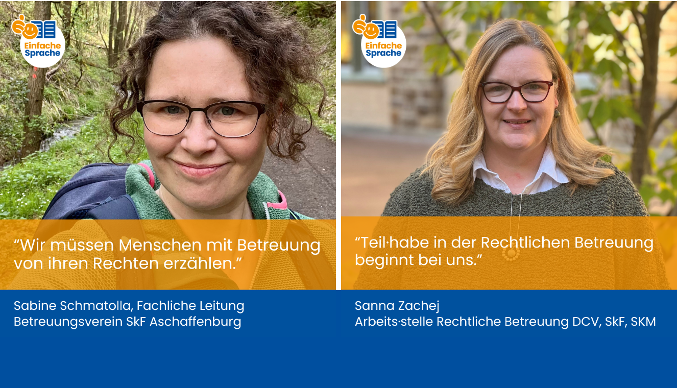 Sanna Zachej, Referentin für Rechtliche Betreuung beim SKM Bundesverband, sagt: „Teilhabe in der Rechtlichen Betreuung beginnt bei uns. Einfache Sprache hilft beim Verstehen. Und wer versteht, kann gut entscheiden. Besonders die Dinge des eigenen Lebens.“ Und Brigitte Nentwig vom Betreuungs·verein des Caritas·verband im Erz·bistum Berlin, ergänzt: „Wir brauchen Einfache Sprache: Das Leben ist schon kompliziert genug für Menschen mit Handicap.“